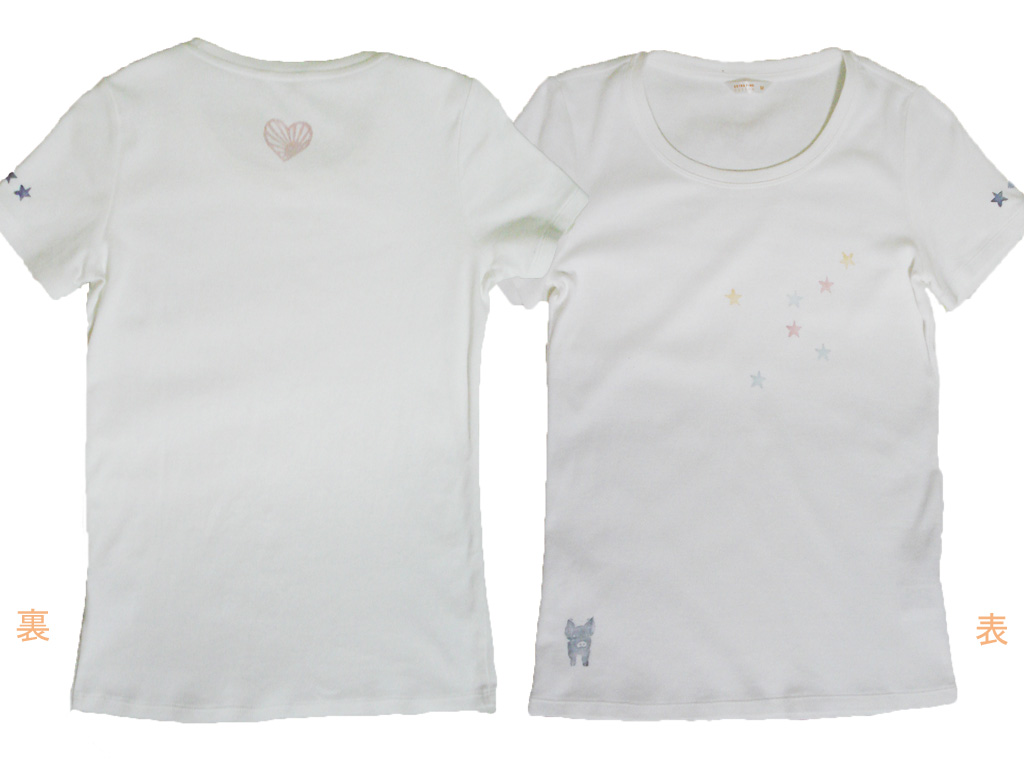 真っ白無地のTシャツに染みが付いてたので染み隠しに模様をつけてみました。